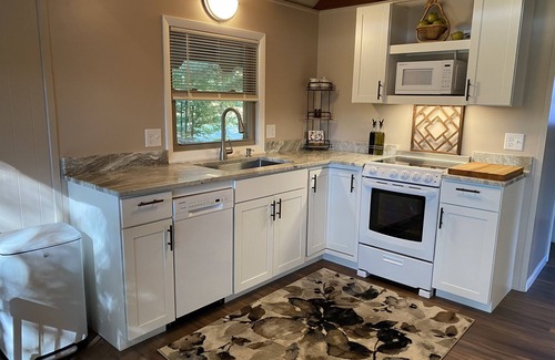 Campfires, sweatshirts, great views…..it’s what this area is all about. The Guest House is located on a quiet, no wake lake 20 miles East of Traverse City. The house is remodeled and up to date with a beautiful kitchen, deck, lake view, kayaks, a paddle boat and hammocks. When you stay at the Guest House you’re close to wineries, shopping, fabulous restaurants and outdoor activities. Or you can just relax and enjoy the lake, watch for birds, read or catch up on your sleep. While we have internet, we don’t have a t.v. You’ll probably be so engaged in other activities, you won’t notice, but bring your own device just in case. Also, in addition to the dining table, we have a small desk in the room with the bunks, in case you need a quiet space to make a work call. There is a park with a beach area, picnic tables and grills on the other side of the lake.