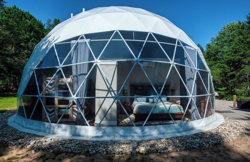 Enjoy an intimate experience with nature and all the amenities of a luxury resort yet only minutes away from Traverse City's finest restaurants, beaches, wineries, shopping, and golf. Only 3 miles from the Great Lakes Equestrian Show and 1.5 miles from Turtle Creek Casino. 1023 sq. ft. of living space with majestic views. The dome is spacious and 20' tall. Enjoy a private bathroom complete with a bathtub/shower, vanity, and toilet, kitchen with a refrigerator, microwave, and hot plate. AC and Heat.
