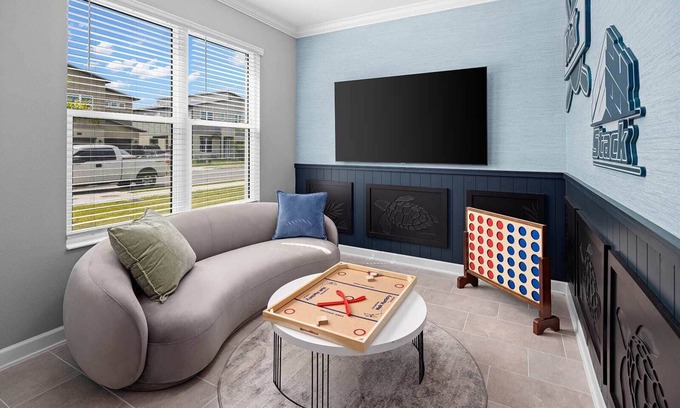 • Game room ft. modern furniture & décor with games such as darts, Connect 4, and more