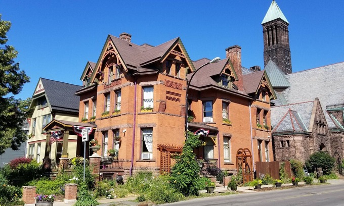 One of Buffalo's preeminent bed & breakfasts. Offering a unique luxury experience and services you won't find at other small or boutique hotels. Hours of restoration work demonstrates excellence in craftsmanship and an eye for detail. The quality and efforts found here surpassed rehabilitation challenges often found in once abandoned buildings which is why in 2018 Buffalo Harmony House received an award for the incredible work completed from Preservation Buffalo Niagara. This place gleams with love and care. Rebuilding the historic Allentown neighborhood and keeping the support for its unique vibe and bohemian culture. A stay here means being transported in time to another era with fine service, decor, and attention like nowhere else.