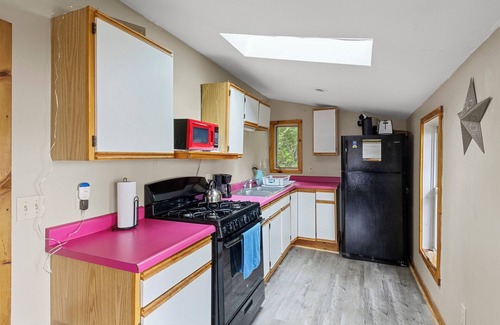 The kitchen is equipped with all the essentials you’ll need to prepare your meals, including a stove, refrigerator, microwave, and cooking basics like pots, pans, and utensils. Enjoy meals on the outdoor patio or gather around the fire pit for a BBQ—just don’t forget to bring your own charcoal! 🍽️🔥