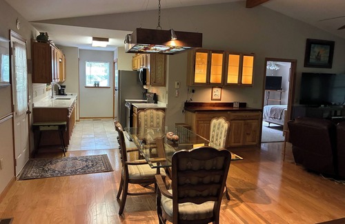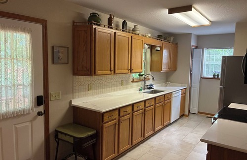 Unwind in Young Harris at this lovely house in this cozy large upstairs home. Surrounded by trees, the property offers a secluded peaceful retreat. Ideal for those looking to unwind and connect with nature. Screened in veranda provides cushion patio furniture to sit and read and watch the birds. Enjoy living room gas fireplace when its chilly outside. Just push on or off button on remote to start fireplace. Then you can sit back read or watch TV on cold or rainy days. This home is perfect for relaxing or working remotely by connecting with in-home fast hi-speed internet/Wi-Fi. Office space provides desk with snuggly sofa bed for extra comfort. You'll find central heating and air conditioning, ensuring a comfortable stay no matter the time of year. Home has a cozy living room with brown leather sofa's where you can recline and pullout leg rests up relax your tired feet, sit back watch your favorite programs on Smart TV with remote. Smart TV has several apps like Netflix, YouTube, Hulu, Max, Disney and Free TV. Enjoy a fully equipped kitchen with all essentials, dishes, utensils, blender, toaster, mixer, can opener, coffee maker. Paper towels, dish towels, sponge, dish soap. Plus two refrigerators to store all your food and beverage's. All kitchen appliance Microwave, Electric stove, Dishwasher with we provide box of Cascade. Convection oven perfect for baking, Laundry room with washer, dryer and utility sink. Laundry dryer sheets, and detergent pods or powder. Minutes from Young Harris College, Cupid Falls and Lake Chatuge. Self entry with door code. Just bring your overnight bags and stay awhile and rest. Looking forward to your visit to this casual comfortable newly carpeted floors, upgraded with quartz top kitchen and laundry room counter tops. Newly painted throughout. Come stay in this delightful private home amongst the beautiful trees. Cleaning provided after check-out. Each time you depart just push lock icon on door pad this will lock door. We are pleased to have you as our guest for all the time you need to stay. Please let us know before your visit what others needs you may have. We respond quickly.