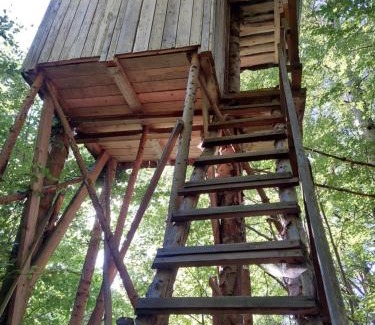 Tree house with private meadow in the middle of the forest is located in Bytca.