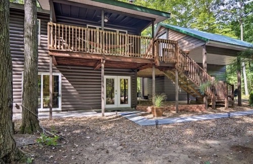 Nestled in a quiet, heavily wooded Interlochen neighborhood, you'll be delighted with this unique two-story home! Enjoy every imaginable convenience. The chic, playful décor and furnishings will almost make you forget you came Up North to explore all the amazing outdoor natural sites nearby. Speaking of outdoors, there's a fire pit with seating, and a hammock on the 2nd floor balcony. Pups welcome! This rental includes the entire home, completely private!