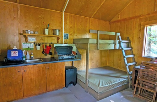 - Outside: open campfire pit, picnic table, grey water disposal dry toilets(outhouses) with toilet paper and disinfectant, showers and standard bathrooms are at the reception pavilion open 24h.