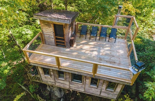 Treehouse #06 | The Rockhouse is located in Saint-Faustin-Lac-Carre. Treehouse #06 | The Rockhouse provides accommodation, featuring Balcony/Terrace, Security/Safety, Fireplace/Heating, among other amenities. This House features Balcony/Terrace, Security/Safety, Fireplace/Heating, to make your stay a comfortable one.