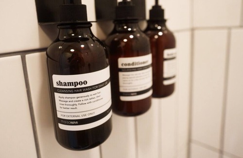 The bathroom boasts a spacious shower, complete with complimentary shampoo, conditioner, and body wash.