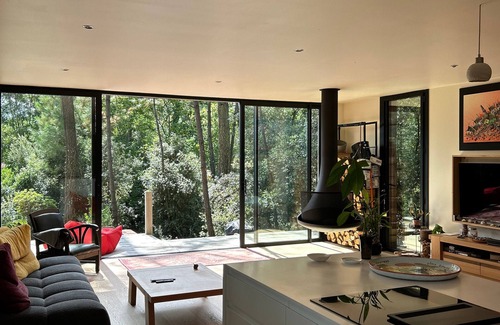 Quietly, you will truly live in communion with nature, from every room of the house you will enjoy the view of the trees. No shutters or curtains so you can observe the birds and the numerous squirrels swinging from tree to tree and which you can observe from your bed when you wake up or in your bath!