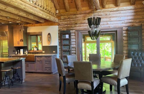 Right on the river this cozy cabin is completely NEW! Everything in the house and around the house has been remodeled, or installed, or in some ways updated. It has 4 bedrooms (three queen beds and one king bed), which are all overlooking the park and river view from all floors, and angles of the house. There are also two futons that expand to full beds, one located upstairs in the loft area and another located downstairs next to the master bedroom.