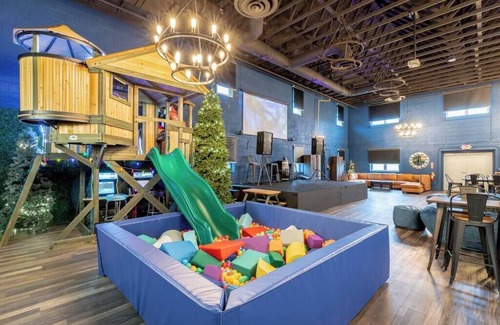 Make unforgettable memories in this one-of-a-kind, family-friendly event space that doubles as a massive indoor sleepover retreat!