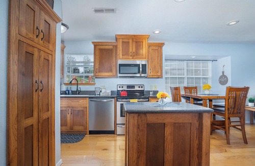 The full kitchen is fully equipped with everything you'll need to prepare delicious meals during your stay. You'll find modern appliances, plenty of cookware, dishes and utensils to serve your meals.