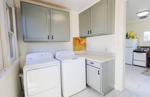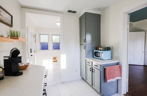 Step inside to find original hardwood floors, sunlit historic windows, and plenty of room to relax. The Treehouse includes a full kitchen, dining room, living room, laundry room, and Smart TVs in every bedroom and the living room. For a restful night’s sleep, all bedrooms feature blackout shades and curtains.