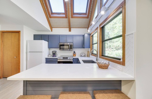 Experience nature at its best at Treeloft - a unique and beautiful family-oriented home nestled among beautiful Pennsylvania forests, just 10 mins from Jim Thorpe. Enjoy winter sports at nearby ski resorts. Privacy, seclusion, and a sense of tranquility await in this magical and newly renovated 3BR, 4BA home, where each bedroom comes with its own bathroom, including two king beds, a queen, double, twin, and two futons. The famous Tank Hollow Hike can start right from the front door with private access to the trail. A patio with a fire pit and 4 decks provide a space to enjoy the surrounding nature.