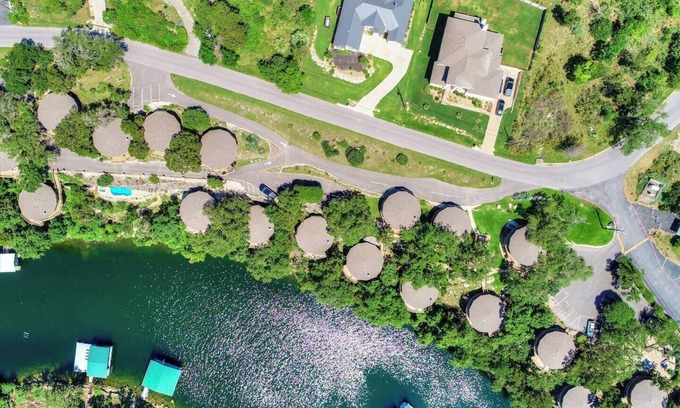 Experience this hidden gem of greater Austin - a collection of fully furnished bungalows nestled right on the banks of Lake Travis. Each unit, boasting two bedrooms and two full bathrooms, can comfortably accommodate up to six guests, with a queen sleeper sofa in the living room. Enjoy panoramic views of the pristine lake from the comfort of the wrap-around decks. Unwind in our exquisite cave deck swimming pool and hot tub, a true marvel to behold.