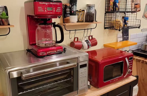 Treetop cabin offers 3 bedrooms, 2 baths, and a luxurious soaking tub. We have a full size washer and dryer and cute kitchenette with tabletop appliances for your exclusive use. The cabin also uses 100% Egyptian cotton sheets, all natural & perfume free cleaning products, and we have cork, carbon neutral flooring.