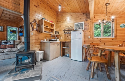 Treetop Hideaway is a rustic cabin retreat nestled on Mallory Beach Road in Wiarton, surrounded by forest and perched above Georgian Bay. Featuring a cozy interior with a full kitchen, sleeping loft, and built-in bed nook, it also offers a wraparound deck, hammock, BBQ, and woodland seating areas. Ideal for couples or small families seeking peace, nature, and classic cottage charm. Please note, there is a dock on the property for swimming.