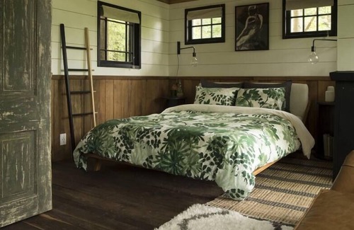 Guest who stay here will be nestled in the beautiful woods of Georgia with lots of fresh air, relaxation, and adventure! All beds feature Tuft & Needle mattresses that are top rated for comfort to ensure a restful night’s sleep. Guests can sleep under the stars in the loft room or luxuriate in the main floor bedroom…all in a climate controlled environment.