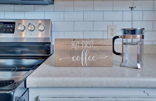 On the downstairs floor, a hallway with local art, farmhouse hooks and a wooden bench leads you to the master bedroom. It is simply stunning. Fall happily asleep on the rustic king bed from which you can see Lookout Mountain. A vintage-style chandelier hangs above and glass doors open to the lower deck. This room also has a smart TV, walk-in closet and en suite bathroom with a soaking tub / shower that’s accessed by a sliding barn door. Down here, you can also stay entertained for hours in our game room. Team up for a pool tournament, duke it out at the foosball table or catch the big game on our smart TV.