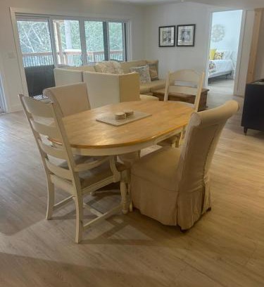Featuring a garden, Treetop Suite offers accommodations in Haliburton. This property offers access to a balcony and free private parking. Outdoor seating is also available at the apartment. With free Wifi, this 2-bedroom apartment features a flat-screen TV, a washing machine, and a fully equipped kitchen with a dishwasher and oven. Towels and bed linen are available in the apartment. For added privacy, the accommodation features a private entrance.