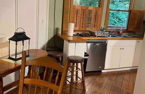 Enjoy coffee on your wrap around deck in the trees, watching deer wonder and birds fly through the lush landscape. Less than ten minutes to downtown, shopping and dining,