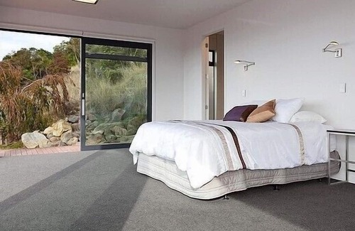Nestled on its own private acre, this Omori Modern Holiday Home enjoys stunning views over the entire length of Lake Taupo, and the village and vineyards below. To make the most of these beautiful views the entire frontage has sliding glass so that none of this outdoor panorama is missed. The glassed frontage ensures that the sun is captured all day, making this holiday home warm and bright through all seasons.