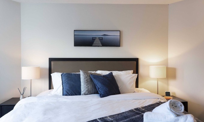 Welcome to the Tremblant Mountain Resort Condo. With close proximity to the ski resort, old village, cross country/bike/walking trails, you can treat yourself to this spacious yet cozy 2 bdrm unit. Featuring a wood burning fireplace, 2 large private bedrooms-1 king & 1 queen, each their own full bathroom & high quality bedding. The outside space is even more delightful with a wrap around balcony and stunning views of the water & Tremblant mountain. Everything you need for a memorable getaway!