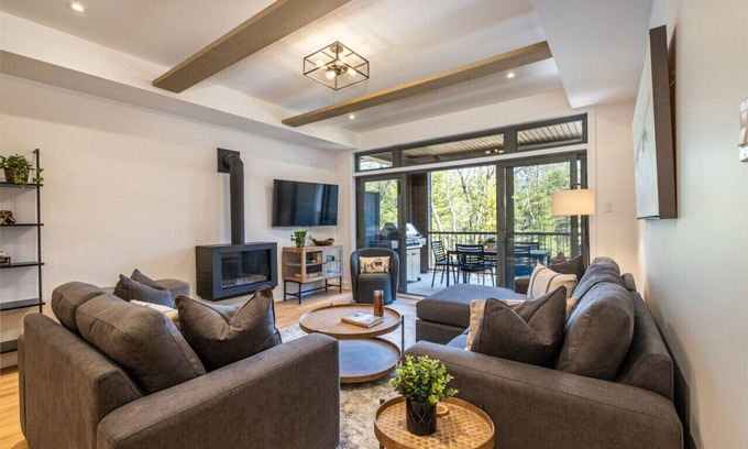 Welcome to Verbier 13-102, where comfort meets alpine charm in Mont-Tremblant. This stylish 2-bedroom condo features a king suite, cozy second bedroom, chef’s kitchen, spa access, and a large balcony with mountain views. With exposed beams, a gas fireplace, and a free shuttle to the pedestrian village, it’s your perfect all-season retreat for relaxation, adventure, and memorable moments.