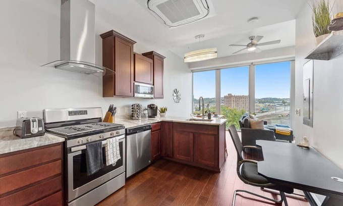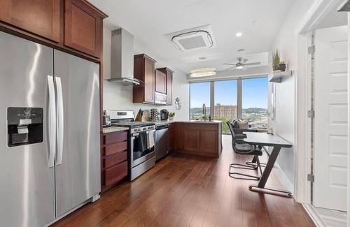 Trendy Downtown 1BR | Free Parking | Gym | Views is located in Downtown Pittsburgh. Trendy Downtown 1BR | Free Parking | Gym | Views provides accommodation, featuring Kitchen, Laundry, Parking, among other amenities. This House features Kitchen, Laundry, Parking, to make your stay a comfortable one.