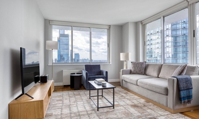 Trendy Midtown West 2BR w/Gym & W/D, nr Museum & Park, by Blueground has 2 Bedrooms , 2 Bathrooms, and max occupancy of 4 people. The minimum rental for this property is 1 nights, but this can change depending on the season you plan on staying. Previous guests have given good rated it, and VRBO labeled it a top-rated Apartment because of the excellent services rendered by the owner or manager of this Apartment, and has consistently provided great experiences for their guests. Most families or guests that use it recommend it to their friends and some of them are repeat guests. Apartment has a friendly neighborhood, and the Hell's Kitchen has interesting places to visit. If you want to learn more about the Apartment in Hell's Kitchen, such as places to visit and things to do nearby, you can check below to learn more.