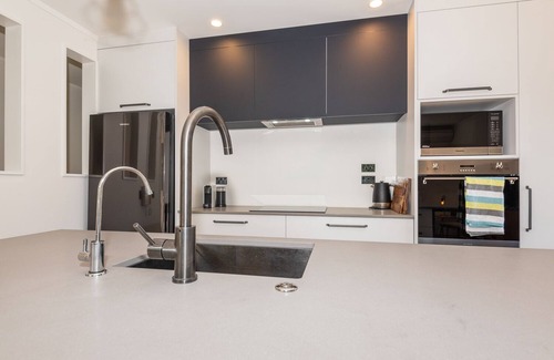 A brand new kitchen, new furniture and beds, two 55 inch TVs, homely private deck and brand new spa pool. You won’t be doing without. 3 bedrooms, plus a bunk room and extra living area make it the ideal accommodation for families and small groups. There is off street parking for 3 cars. Easy keypad entry.