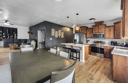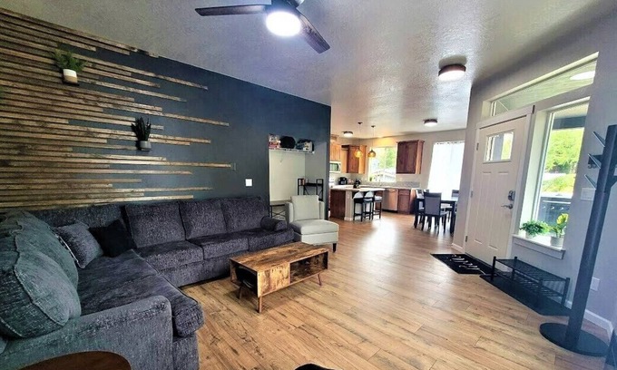 Bright and comfortable house with lots of fun décor. There are queen beds in every bedroom along with one twin loft bed. Each bedroom has its own unique theme! As well as ample closet storage, comfy blankets and its own TV. There are two full bathrooms with a bathtub and a walk-in shower. The kitchen is fully stocked for all of your delicious home cooked meals. Starter coffee and nespresso pods, tea and hot cocoa are provided as well as some basic seasonings.