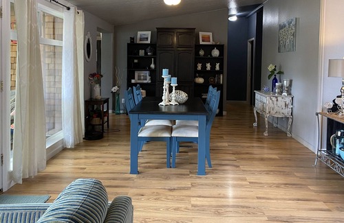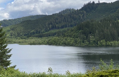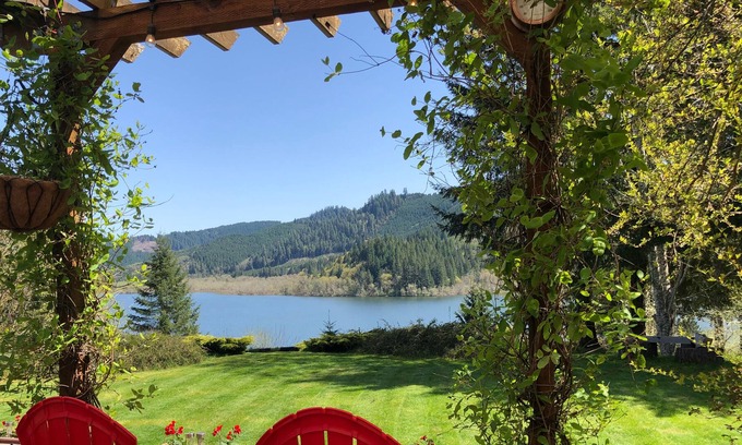 Our entire, beautifully decorated home is available to you in a serene, secluded, environment twenty six miles west of Eugene, surrounded by trees and wildlife. Enjoy our unobstructed view of the beautiful, natural, Triangle Lake from the spacious three bedroom, two bath home. A large outdoor deck with shade and sun options provides additional outdoor living space for dining and entertainment.