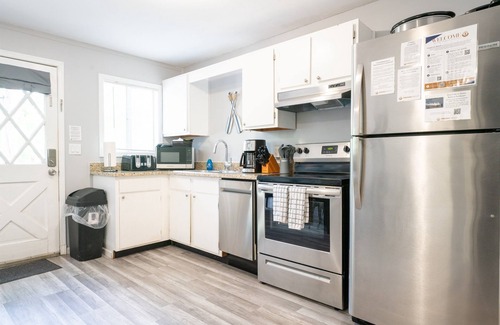 We provide a STARTER supply of toilet paper, paper towels, dishwasher detergent, and trash bags. If your stay is longer than a few days, please plan to make a run to the store for additional supplies (a handy convenience store is just around the corner). Also, we provide enough towels for the size of your group. Since we are not a hotel with permanent housekeeping and laundry staff on site, we are unable to provide replacement linens or towels during your stay. But to help with this, the new and improved on-site laundry is free for your use!