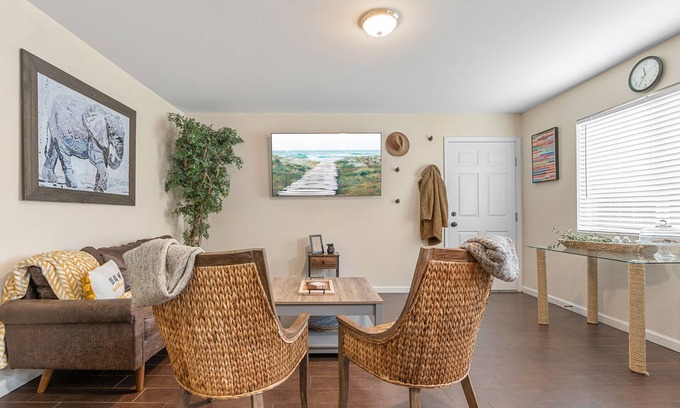 Our family-friendly 2 bed 2 bath is situated in the heart of the city and is conveniently located close to all the best attractions. Within minutes are some of the city's most popular restaurants, bars, and shops. For those looking to explore the outdoors, we are just a ride away from Lake Arrowhead, as well as lush parks with trails perfect for biking and jogging. We are also within easy access to public transportation so it is easy to get around. Only 2 minutes from the University of Redlands.