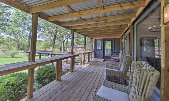 Enjoy a little slice of Texas paradise at this bright Kemp vacation rental situated on 20 acres! Start your morning with coffee in the sunroom, then explore the on-site Trinity River access or fish the stocked pond. Complete with a modern interior, furnished deck, and a backyard with a fire pit, this 5-bedroom, 3-bathroom property with a detached Bunk House and detached bathroom is the ideal location for family bonding moments. Pause from the peaceful scenery and venture out to Cedar Creek Reservoir (15min), hit the fairways at Pinnacle Golf Club or tour a local vineyard!