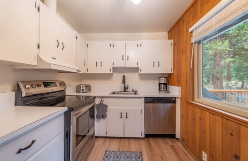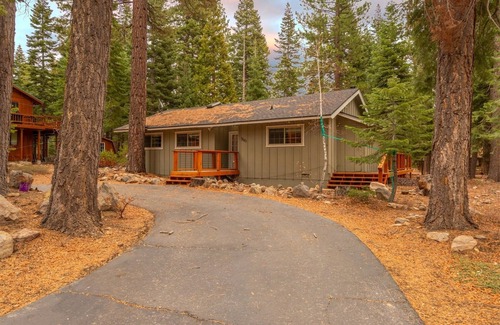 This quaint propertyis a cute family cabin in North Lake Tahoe. The cabin has a brand new wrap-around deck with a beautiful hot tub for your enjoyment! Large front and back yard creates the perfect space for pets or little ones to run around. The living area is warm and inviting with a wood-burning stove for those colder days.