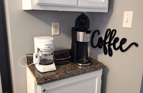 Upon arriving you will find contactless access to this one floor, fully furnished, 1 bedroom with a comfy queen bed. There is additional sleeping in the LR with an oversized Lazyboy chair with a pull out single bed. The sofa could also be used for sleeping if need be for a child. All your bedding is provided as well. We have provided smart TVs and access to WIFI.