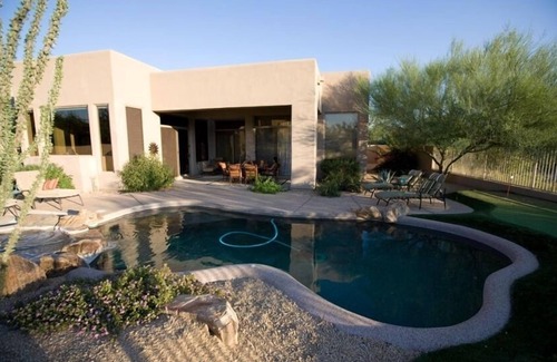 Troon North Rental W/Putting Green & Private Pool/Spa is located in Troon North. Troon North Rental W/Putting Green & Private Pool/Spa provides accommodation, featuring Air Conditioner, Parking, Pet Friendly, among other amenities. This House features Air Conditioner, Parking, Pet Friendly, to make your stay a comfortable one.