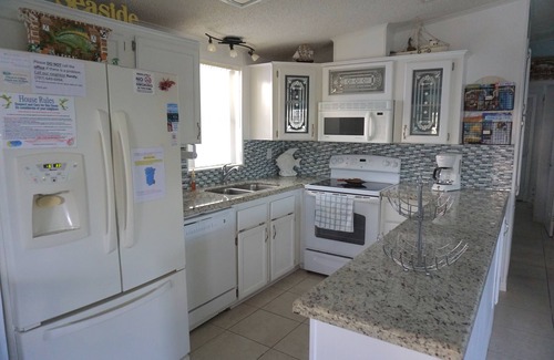 Sparkling clean and beautifully remodeled 2Bd/2Ba vacation home that features OPEN WATER views with great boating access to the ocean or gulf! This home is fully furnished will all the amenities for an over the top vacation experience. This waterfront paradise features a 35' concrete seawall with cleats, dock posts, fish table and BBQ grill to cook your catch! Main living room offers high ceilings with awesome views of the water and leads to a spacious covered porch overlooking the water. This home is designer decorated with lovely accents and decor throughout. Kitchen features clean and white kitchen cabinets with full line of appliances and granite countertops. Living room features lots of comfortable seating with queen sleeper sofa, love seat and 2 comfortable chairs with a large flat screen television with full expanded cable and you will enjoy splendid water views. Master bedroom features a king size bed with lots of closet storage and full size private bathroom. Guest bedroom features a queen bed with closet storage and access to the hallway full bathroom. Additional amenities include central air conditioning, heat, dishwasher, microwave, washer, dryer, tile floor, BBQ grill, fish table, expanded cable, ceiling fans, patio furniture and covered porch. You'll set your mind at ease when you stay at this beautiful home in the Florida Keys!