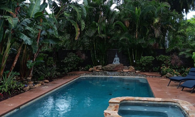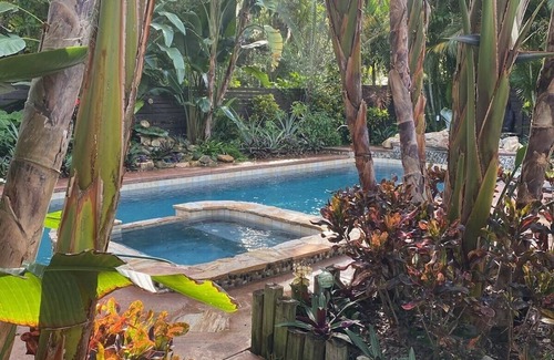 Although most people never leave our resort-style backyard, it's a perfect vacation space and location for families looking for a Florida vacation or senior snowbirds looking to float/relax in our warm saltwater pool/hot tub and sunny weather.