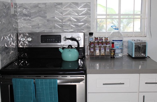 Tropical Getaway is a little slice of heaven as it provides a tranquil sanctuary amongst its tropical trees and unique custom space. Bring your family or a group of friends to relax in our unique outdoor living space where you can spend the cool nights on the porch or soak up some sun on the back patio. The children and adults will love the games provided including jumbo jenga, uno, loodi,etc. You can enjoy many of the fruit trees on the property or one of the books we provided on Jamaican culture & history. Hot water & washer dryer included. Updated & modern layout. Our home is in a a gated community 5 min away from Beaches, 7 min away from Wata Land, Yaaman Adventure, and 14 min away from Mystic Mountain, Dolphin Cove, Dunns River and a tons of other tourist attractions and things to do.