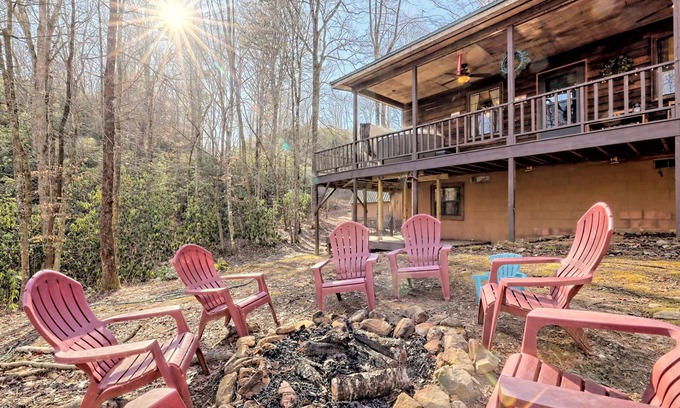 Two bedroom with one king bed, one queen bed and sleeper sofa in living area. Well equipped kitchen. Central AC and heat. Outdoor living includes a front and back deck with a brand new hot tub and fire pit overlooking the creek, porch swing and gas grill.