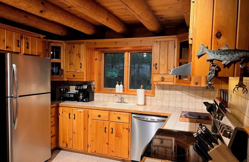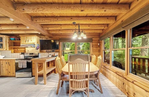 A true log cabin experience with 3 cozy bedrooms and 2 full bathrooms + 2 half baths. Surrounded by towering trees in a serene forest setting, offering ultimate peace and privacy.