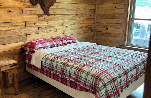Your next adventure begins at this unique country log home retreat! Nestled on 9 private acres, this superb property offers a cozy retreat for guests. With a king bed and a queen bed, you'll find the perfect spot to recharge after a day of exploration. The house features modern amenities like heating, a washing machine, and AC, ensuring a comfortable stay. The two bathrooms are equipped with showers, providing convenience for everyone. Whether you're sipping your morning coffee on the porch or enjoying a peaceful evening in the spacious living area, our amazing house will make you feel right at home. It's easy to see why you'll be able to unwind at our place.