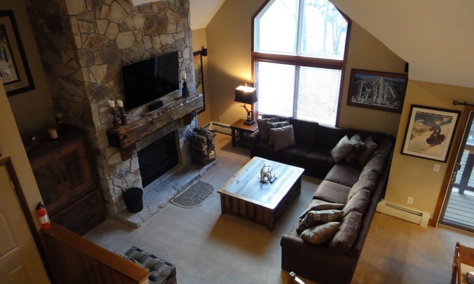 Ski right out your door onto a community trail to the nearest slope. This is a 3 bedroom 3 bath end unit that sleeps 12 comfortably with 18-20 foot ceilings throughout, located directly on Mount Snow at the top portion of Seasons private mountain side community. Unit has been recently updated to include all the details that you expect from your home away from home while you enjoy Mount Snow skiing/boarding in Southern Vermont. HD smart flat screens from 40' - 60' in all rooms, full capacity front load Washer & Dryer, Microwave, Double Oven, Sectional Sleeper Couch, blinds throughout, and double bunk bed set for the 2nd bedroom, new custom loft Queen and Twin beds, new carpet throughout, and many more surprises.