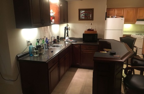 That’s right – take advantage of a completely private waterfront Lake Anna setting, with 6 bedrooms, 5.5 baths (3 master suites with private bath, 1 King with private detached full bath, and 2 bedroom suites share a bathroom), a lower-level wet bar with poker table, 65” large screen TV, a full kitchen, and a full bath. Enjoy the gas fire pit on the lower level deck just outside of the bar area and other features. This is a very well stocked modern home that features a large gourmet state-of-the-art main floor kitchen with all of the amenities including granite countertops, a large island, dual sinks, dual ovens, six-burner Jenn-Air gas stovetop, a glass cook surface, dishwasher, Keurig and regular coffee makers, and a super large refrigerator and separate full size freezer to easily hold ALL of your refrigerator/freezer items. If this fabulous kitchen isn’t quite enough for your culinary needs, then enjoy our second full and complete kitchen in the lower level next to the wet bar. If cooking outside is your preference, enjoy your favorites with some great gas grill BBQ’ing using a huge grill on the deck right outside the main floor kitchen door, or if you really want to enjoy the outside with lake shore BBQ’ing, then take advantage of our HUGE charcoal/wood burning ‘Cowboy Cauldron’ for grilling your steaks, chicken, shrimp, hamburgers, hotdogs, veggies, etc. on a cooking surface large enough to feed the masses! The options are endless. You can also enjoy the Cauldron as your lakeside "fire pit" for your evening get-togethers for socializing and making memories! Revel in the peaceful tranquility of the water, watch birds, ducks, and many of the other wonders of nature from the boathouse and deck on the water. There’s also great fishing off the dock...catch bass, catfish, blue gill, etc clean them on our outdoor filet station and grill your catch on the lakeside cauldron!