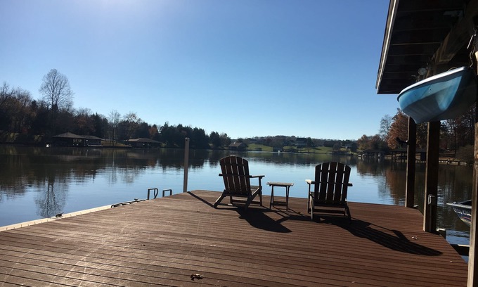 Enjoy the beautiful water views right on the water from our boathouse. Or read a book, take a nap, or simply relax in the quiet tranquility of nature. Take advantage of the boathouse Tiki-bar complete with refrigerator. Enjoy available kayaks, or bring your boat and dock it at our boathouse for safety and security. Enjoy wireless Internet, play games on the Wii, or watch a show on TV’s located in many areas of the house – don’t forget about sport favorites like College and NFL playoff season, the Super Bowl, March Madness, the Masters, the Kentucky Derby, the World Series, or whatever you prefer. Note that the previously available hot tub referred to in some reviews is no longer available. We are located on the ‘public’ side of Lake Anna, also known as the “cold side” of the lake. Create lifelong memories and stories that will be enjoyed for generations to come!