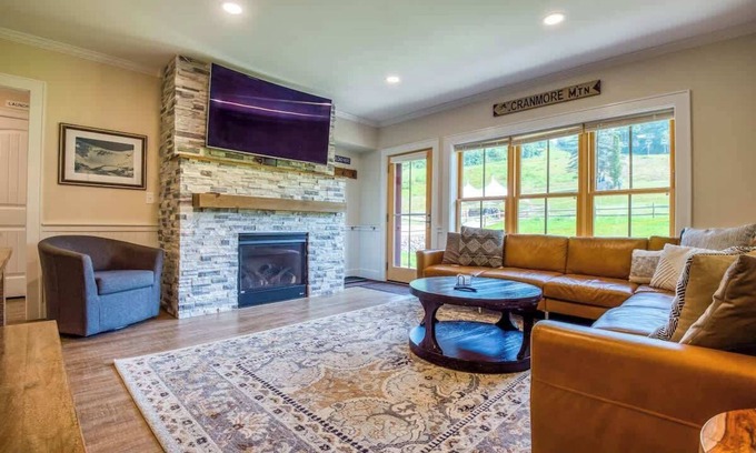Welcome to your luxurious getaway at the base of Cranmore Mountain! This upscale 3-bedroom, 2-bathroom condo offers the perfect blend of comfort and convenience. Step into a spacious living room where you can unwind by the gas fireplace, or enjoy a meal prepared in the fully equipped kitchen. The condo features AC and heating to ensure your comfort in any season.