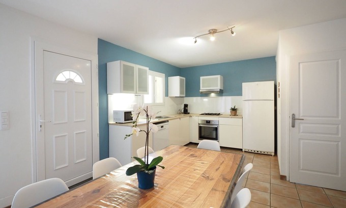 You will benefit in the rez of putting on of a nice room of life opened on kitchen (dishwasher, combined fridge freezer, electric oven, plate gas, microwaves, filter coffee machine.), Of a room (bed 160/190) with bathroom, a toilet, a laundry (washing machine).