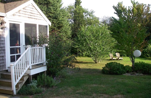 Cottage #4 was completely renovated for my personal use and never intended as a rental. Well a move to the West Coast changed all that. So…Cottage #4 has everything I love and wanted in a cottage, a big kitchen designed for a cook.. with great appliances, great pots and pans, good knives, big gas stove, Bosch dishwasher, redwood counters, and an old soapstone sink. The bedroom has a comfortable queen sized bed, large window and skylight. The bathroom is beautiful, but the outdoor shower is all you will use. There is a big screen porch overlooking a private yard and wooded wetlands. There is cable TV (flat screen), and high speed internet. Its a spacious cottage perfect for two people. Just 2 miles to the national seashore beaches and a a short walk to beautiful Fort Hill and views of Nauset Marsh. My past guests have all said how much they feel at home in the cottage...and never want to leave.